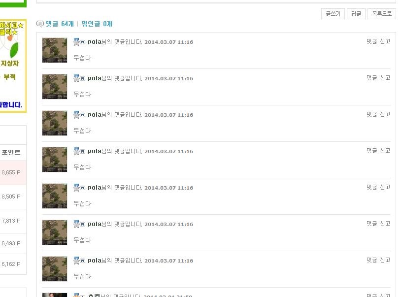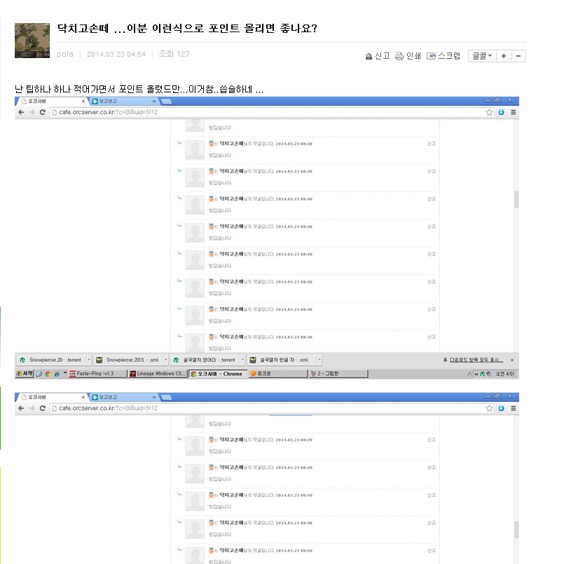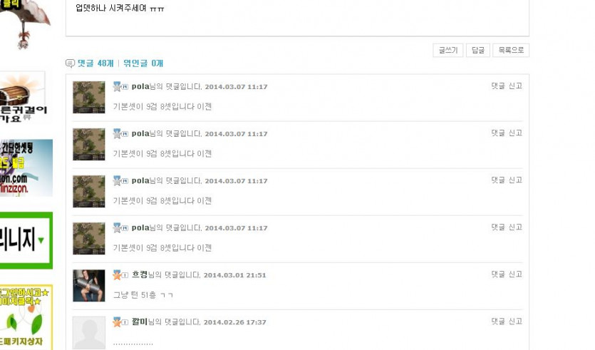 이게 3월 27일날 pola님이 작성하신 글이네요 닥치고손떼님의 도배성 댓글을 질타하는 글이죠