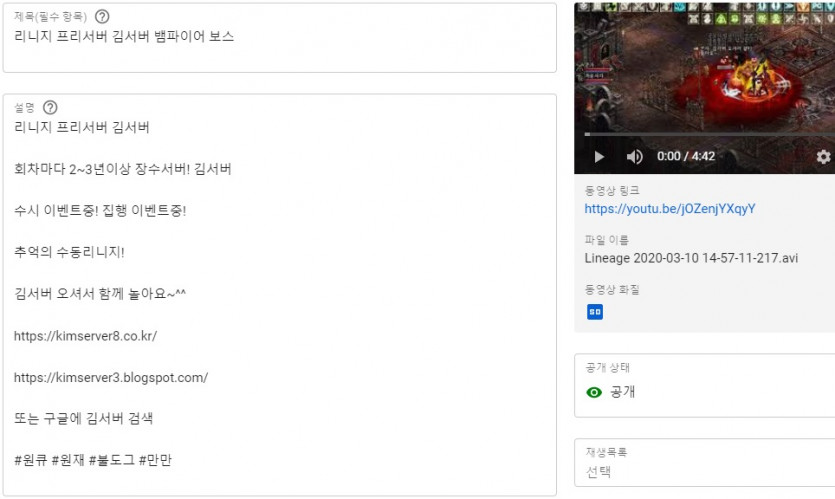 리니지 프리서버 홍보