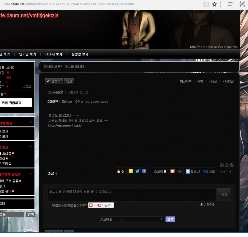 리니지 프리서버 홍보
