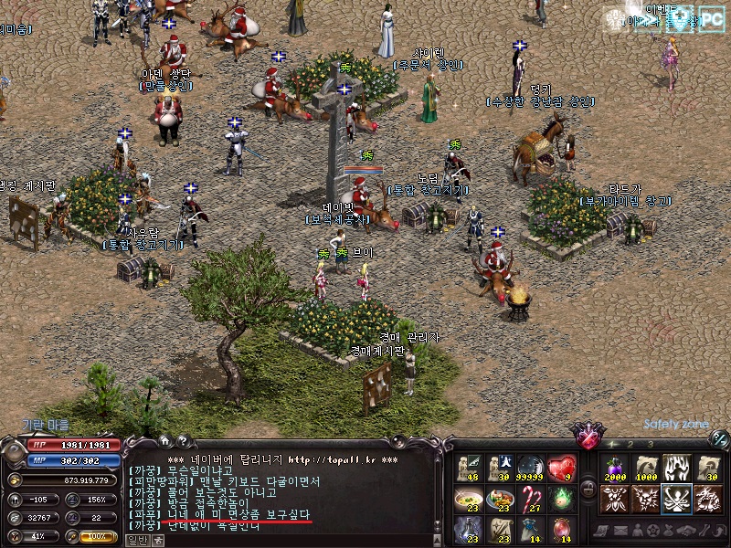 11층 중앙부근에서 할멈+파푸vs까꿍 이 교전중에 버프가 풀려 가장빠른 루돌프로 변신하여 약을 올리던중